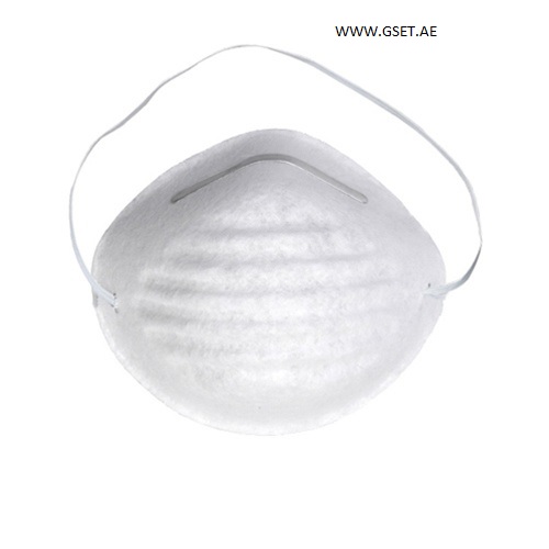 Nuisance dust mask, polypropylene, aluminum nose bridge, single fabric elastic head band, 50 pieces per box, 20 boxes per case, 1000 pieces per case.